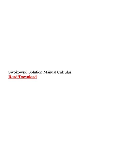 Download swokowski calculus solution manual PDF online is a convenient and frugal way to read swokowski calculus solution manual you love right from the comfort of your own home. Yes, there sites where you can get PDF "for free" but the ones listed below are clean from viruses and completely legal to use.